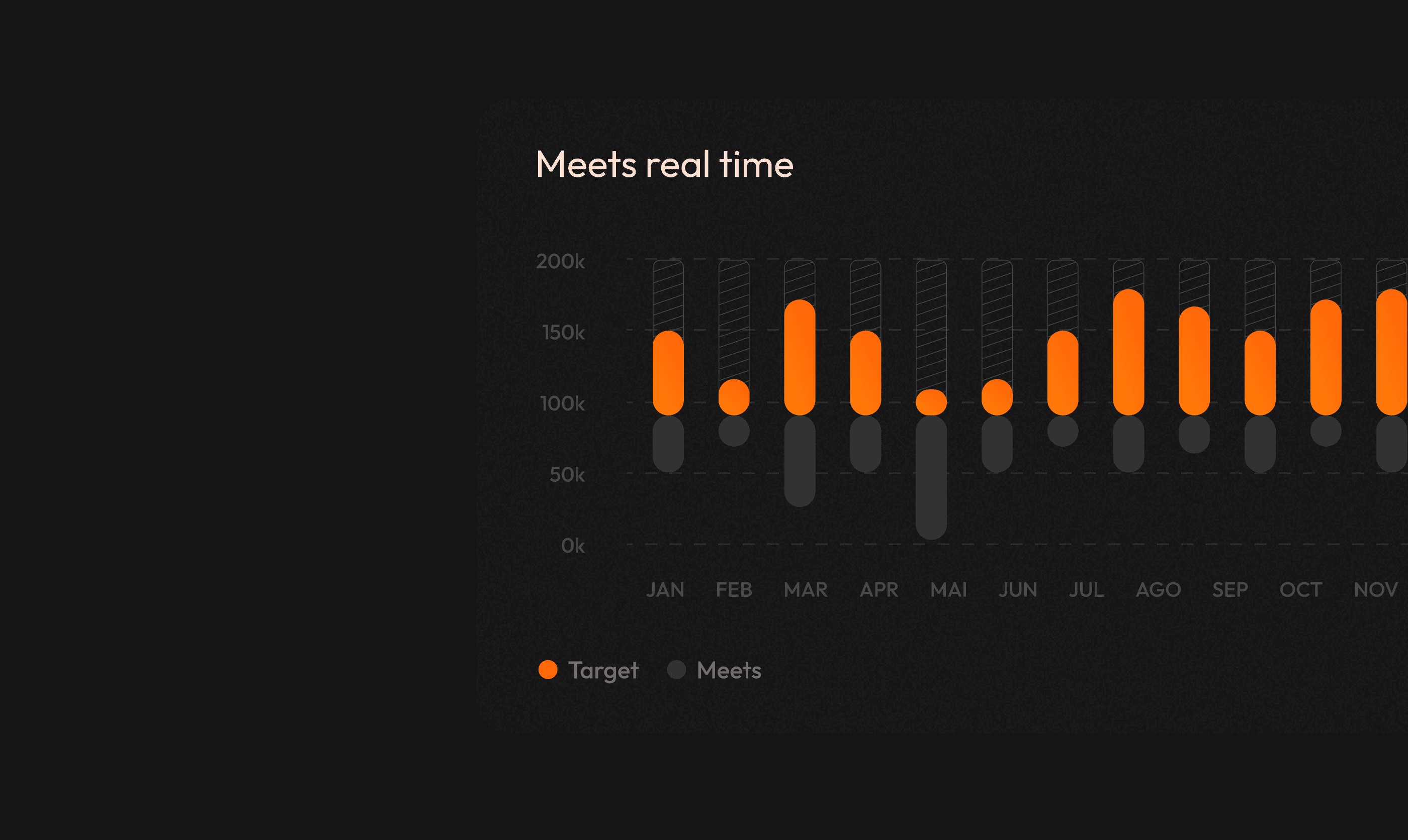 The dashboard displays progress in real time, comparing current revenue with target and projecting the month-end closing. It's the missing tool for aligning the operational team with financial goals.